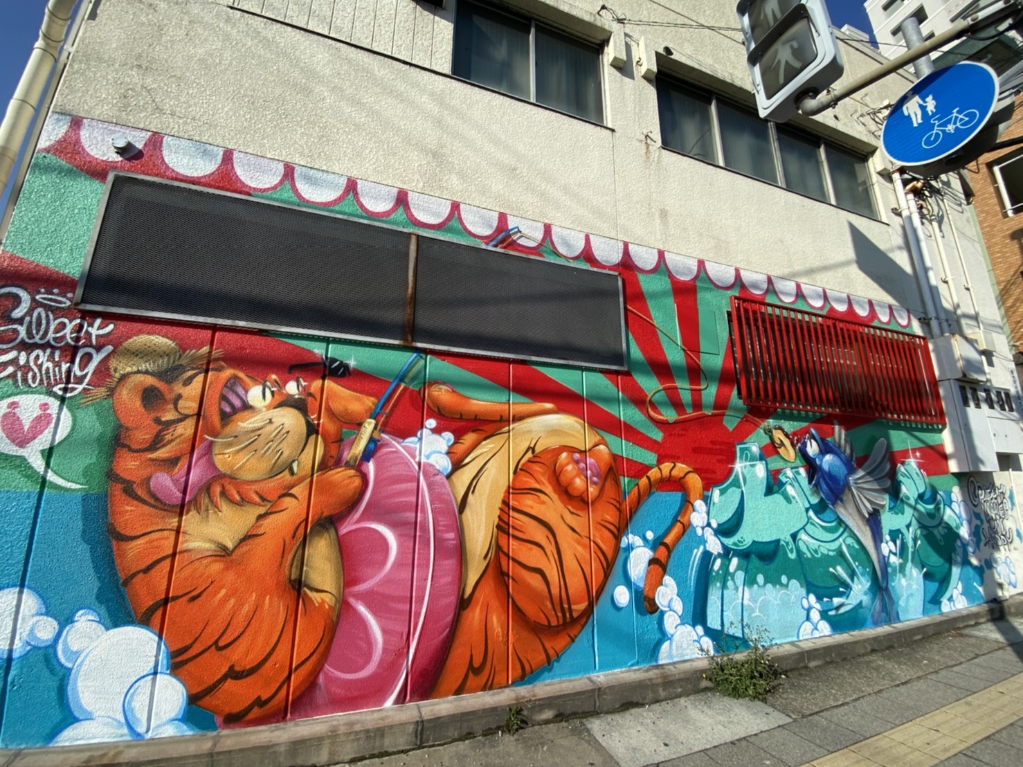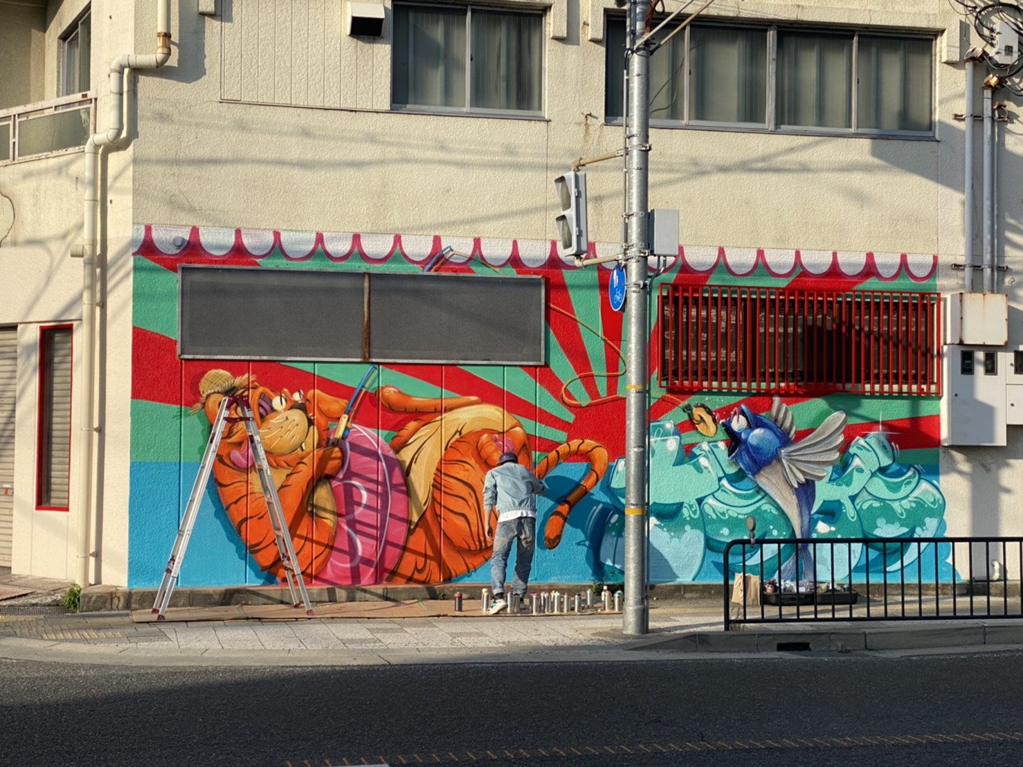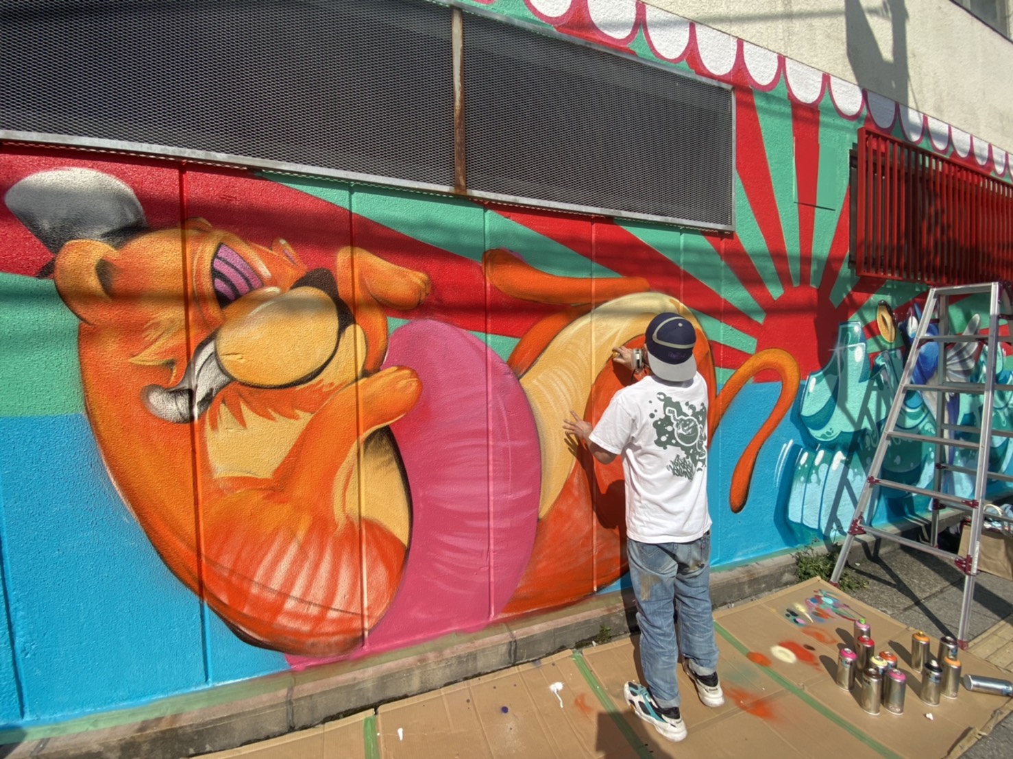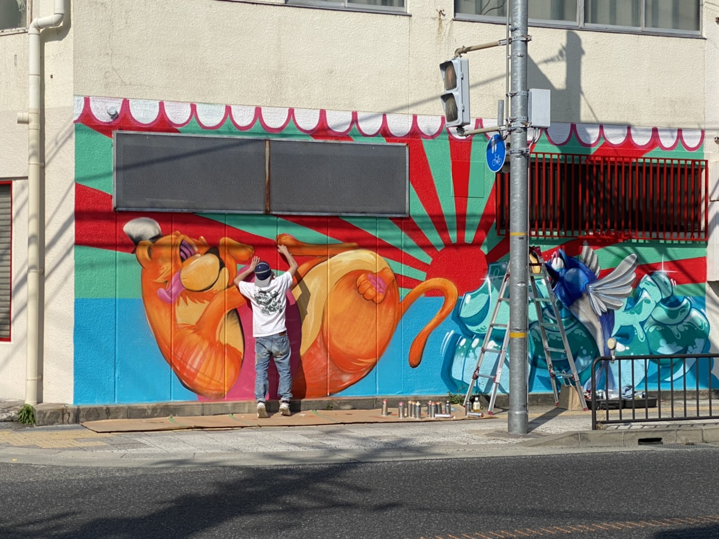 単なる飲食店の装飾に留まらず、行き交う人々の視線を「釣り上げる」ように引きつけ、一瞬で記憶に刻む。BOMBGWORLDが掲げる「アートを身近に」という想いを、国道というパブリックな舞台で表現したプロジェクトです。"