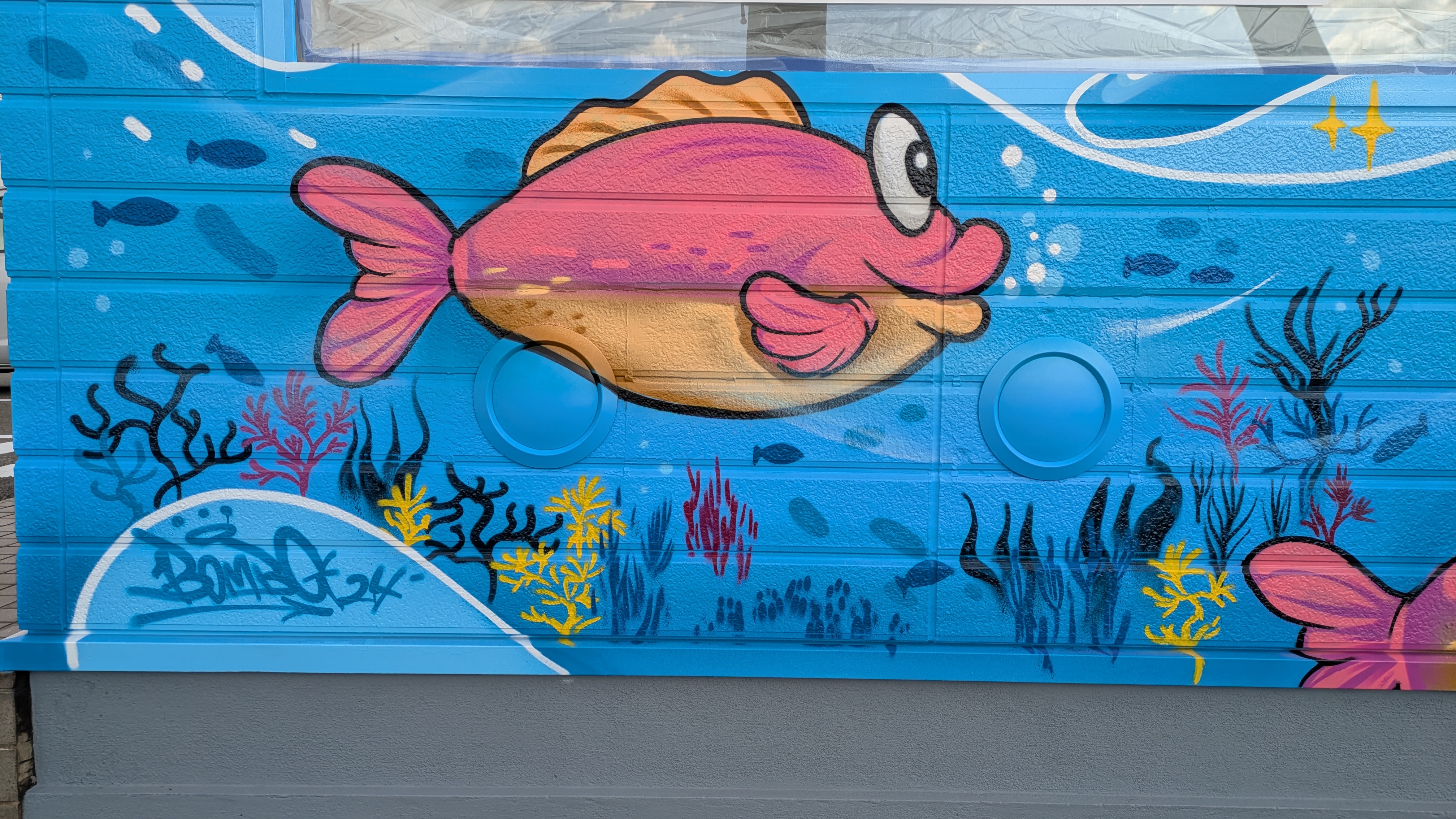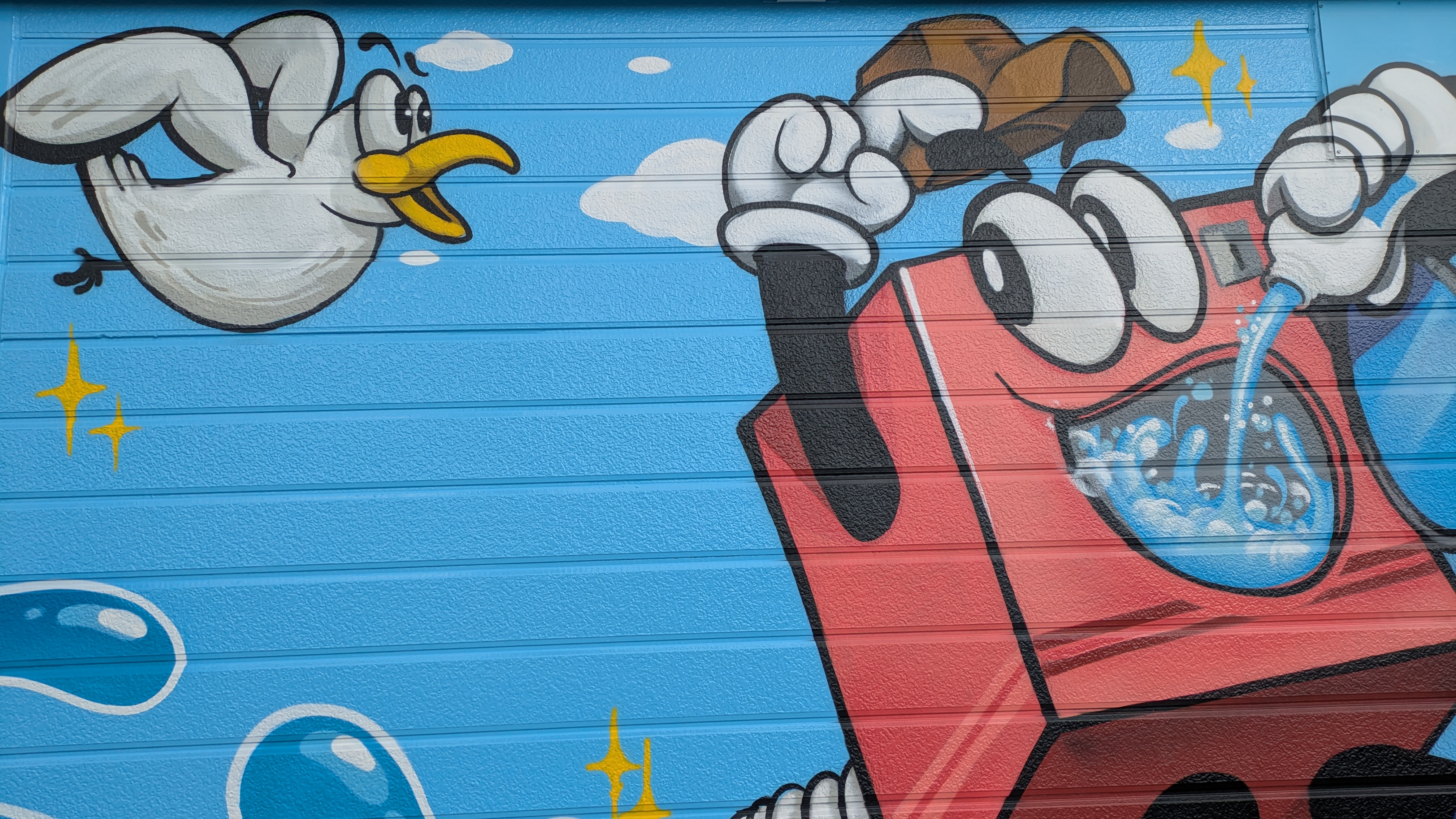 "海を守るコインランドリーとのコラボ制作。店舗のリニューアルに合わせて制作した『海を守るシリーズ』です。